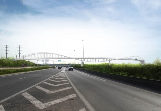 Accessible aux personnes à mobilité réduite, aux piétons et aux vélos, la passerelle relie la Pointe du lac, côté Créteil (près de la Base régionale de plein air et de loisirs) à la station du bus 393 côté Valenton. Elle survole la RN 406, la RD102 et la voie de bus en site propre pour (re)connecter les espaces verts et les transports en commun aujourd’hui inaccessibles à pieds. Plus d'informations ici.