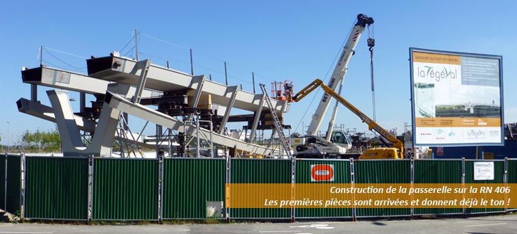 Dans la nuit du 27 au 28 août 2015, le SMER pose la grande travée de la passerelle au-dessus de la RN 406 qui sera fermée à la circulation pour l’occasion. Suivre le chantier en images.