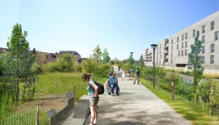 Prochaines étapes : terrassements, recomposition de sols, réalisation du cheminement, plantation d’arbustes et d’arbres pour offrir un cadre agréable et notamment séparer la Tégéval de la route... Cette « armature végétale » accueillera peu à peu la végétation spontanée, au cœur de la stratégie paysagère de la Tégéval. Deux grandes prairies accueilleront les loisirs et temps de détente des habitants.